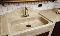 Per la realizzazione di lavelli , bacinelle , lavabi, lavabi d'appoggio, fontanelle, pozzetti ecc., la diffusione di materiali alternativi quali gres, acciaio, porcellana, non ha soppiantato l'uso del marmo; ne ha invece evidenziato i pregi ineguagliabili. La nostra azienda integrando e rifinendo con esperta manualitą artigianale il lavoro di macchine appositamente progettate e commissionate, proponiamo un campionario di lavelli che, assieme ai colori e alle forme tradizionali, comprende modelli nuovi e accattivanti sia nel disegno, sia negli effetti cromatici e nelle venature dovuti a marmi e pietre mai utilizzati prima.